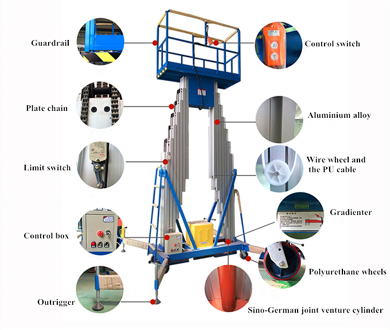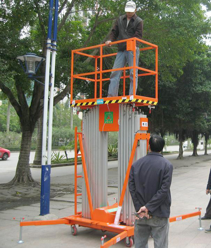 鋁合金式升降機該系列產品分為單桅柱,雙桅柱,三桅柱及四桅柱鋁合金升降平臺,升降桅柱選用優質高強度鋁合金型材,采用雙鏈條牽引,提高安全系數。鋁合金升降平臺廣泛適用于工廠、酒店、賓館、商場、超市、體育場、車站、電廠等,最適合狹小場地的高空作業維修,是保養機具、油漆裝修、調換燈具、電器、清潔保養等用途。