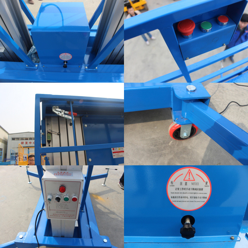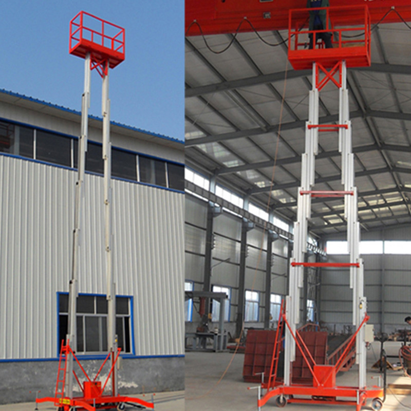 鋁合金升降機該系列產品分為單桅柱,雙桅柱,三桅柱及四桅柱鋁合金升降平臺。廣泛適用于工廠、酒店、賓館、商場、超市、體育場、車站、電廠等,最適合狹小場地的高空作業維修,是保養機具、油漆裝修、調換燈具、電器、清潔保養等用途。
