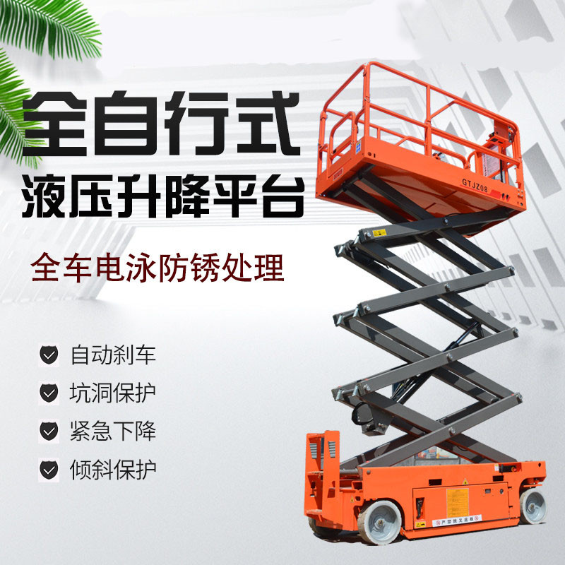 全自行式升降平臺是一種多功能起重裝卸機(jī)械設(shè)備。起升高度從1米至20米不等,可根據(jù)個人要求訂做特殊規(guī)格的平臺。自行式升降平臺一般采用高強(qiáng)度合金材質(zhì),結(jié)構(gòu)堅固,使升降機(jī)的偏轉(zhuǎn)與擺動極小。具有自動行走功能,可選三項電源控制和電瓶控制行走,能夠在不同工作狀態(tài)下,不需外接電源,手柄控制行走,速度可調(diào)式,移動靈活、操作方便、升降自如,只需一人便可完成前進(jìn)、后退、轉(zhuǎn)向、快、慢速行走和上下等動作,省工、省力。特別適用于車站、碼頭、機(jī)場、電廠、體育場館、大型企業(yè)等較大范圍的高空作業(yè)。