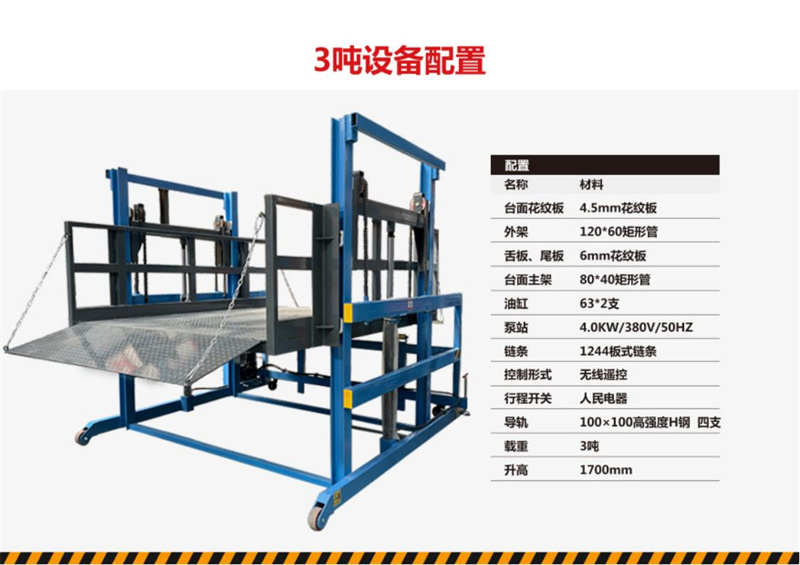 4.卸貨平臺底架下設有緩沖 橡膠墊,在平臺下降到地面時起到緩沖作用減小沖擊;