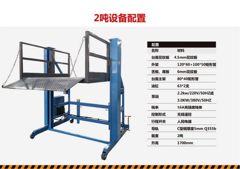 6.液壓系統及電器控制系統安裝在該設備側面,便于維修及預防車輛在裝載貨物倒車時頂撞到該電控箱,7.選用交流380V或220V電 壓為動力電源(用戶需在訂購時預先選定)充分體現設計結構更合理實用。